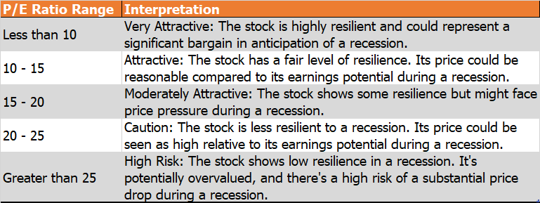 Step 7: Analyze the P/E ratio. A lower ratio indicates potential resilience in a recession.