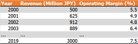 Step 1: Collect the historical data of the stock (annual revenue, operating margin).