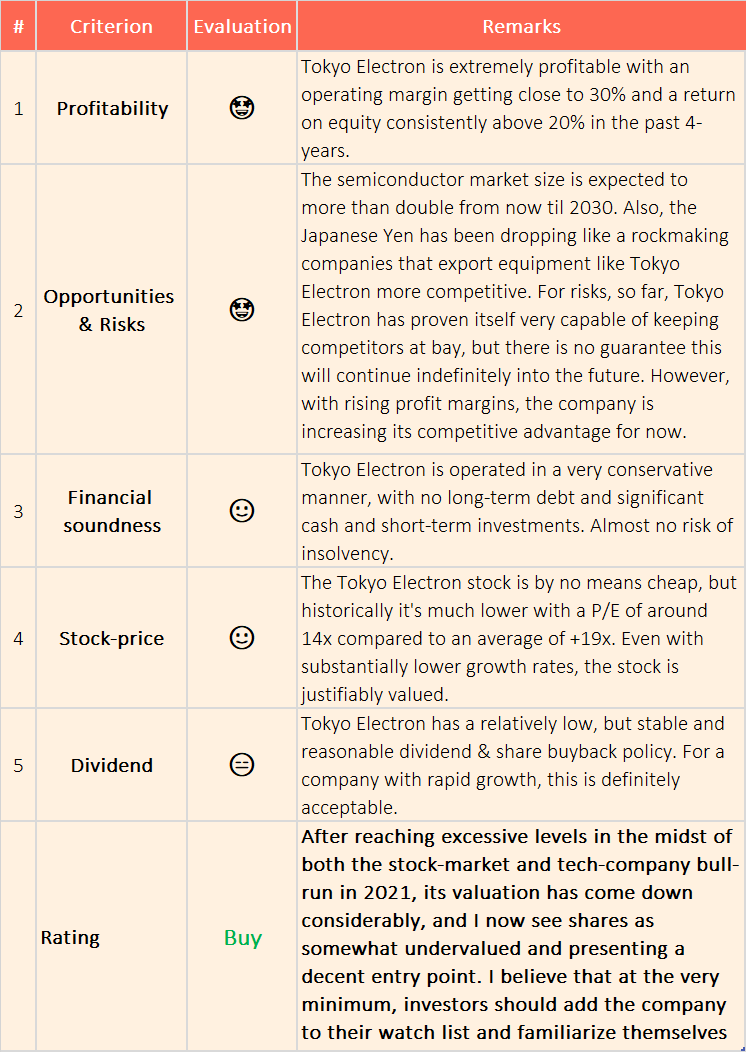 Overall, Tokyo Electron has a relatively low, but stable and reasonable dividend & share buyback policy. For a company with rapid growth, this is acceptable.