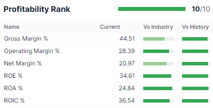 Overall, TEL is extremely profitable with an operating margin getting close to 30% and a return on equity consistently above 20% in the past 4-years.