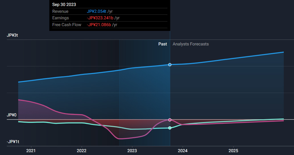 Financial Performance: Over the past few years, Rakuten has experienced significant financial challenges. In FY2020, their revenue was 1,455,538 million yen, but they faced an operating loss of 93,849 million yen. This trend of increasing revenue but significant operating losses continued in FY2021 and FY2022. For instance, in FY2022, despite a revenue of 1,920,894 million yen, the operating loss deepened to 371,612 million yen. This pattern indicates a growing revenue stream but challenges in achieving operational profitability.